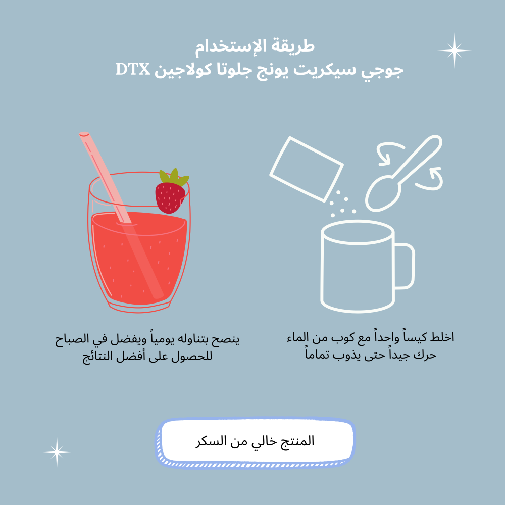 هو مكمل غذائي قوي يجمع بين فوائد مضادات الأكسدة والفيتامينات والكولاجين لدعم صحة البشرة وتعزيز مظهر أكثر إشراقًا ونقاءً وشبابًا ..سواء كنت تتطلع إلى تحسين ملمس البشرة، أو تقليل ظهور البقع الداكنة، أو ببساطة الحفاظ على بشرتك تبدو في أفضل حالاتها ، فإن JOJI Secret Young Gluta Collagen DTX Mixed Berry هو الخيار الأمثل
