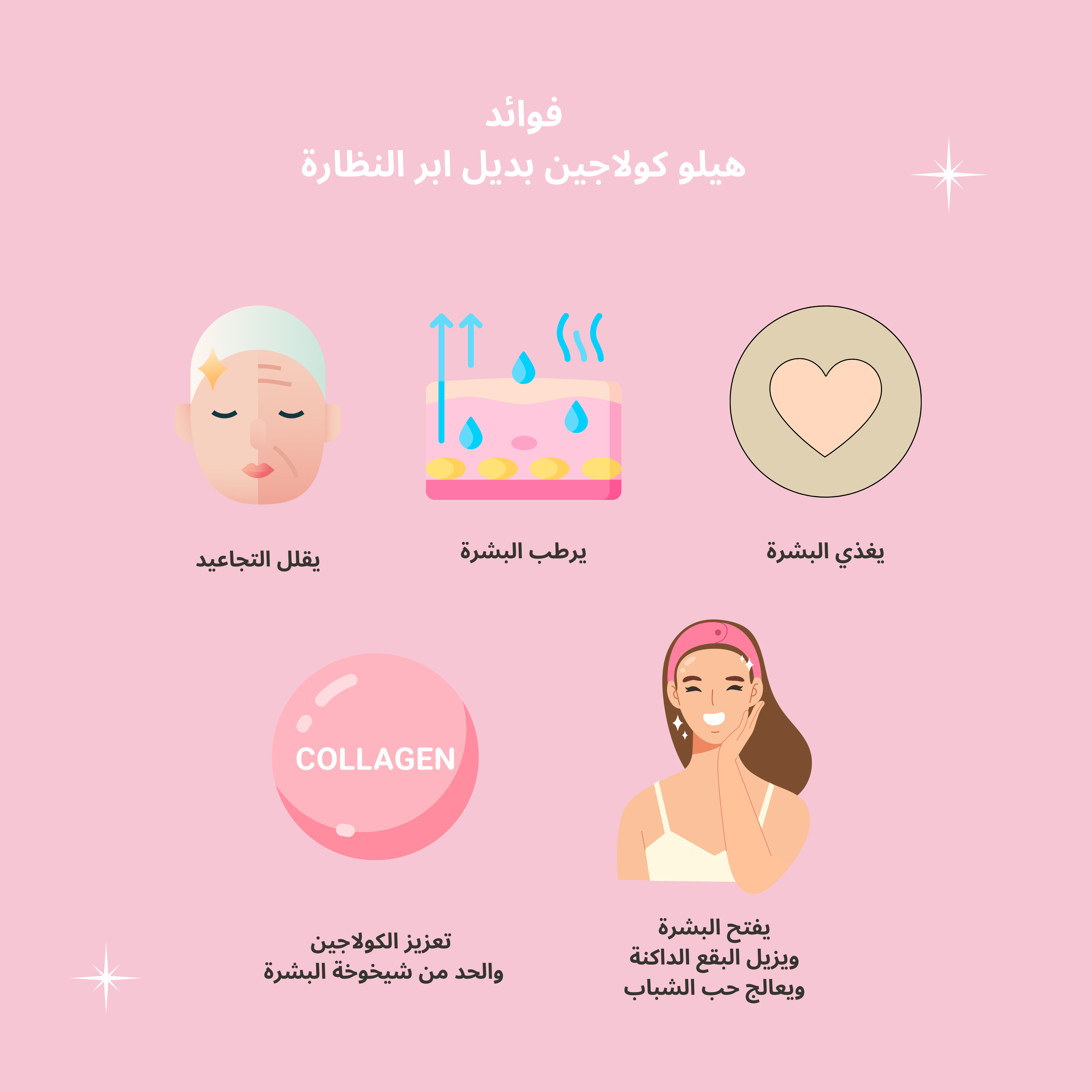 تحسين مرونة الجلد وجود الكولاجين يساعد في تعزيز مرونة البشرة وتقليل ظهور التجاعيد